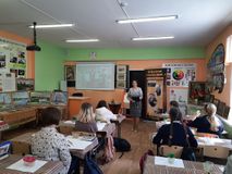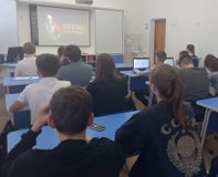 Присутствующие познакомились с жизнью и творчеством Жукова, посмотрев виртуальную экскурсию, которую провели активисты школьного музея Сенюшкин Кирилл и Костин Егор. Ребята рассказали о непростой жизни художника, его педагогической и творческой деятельности.