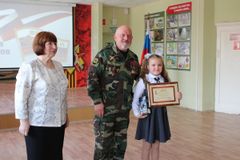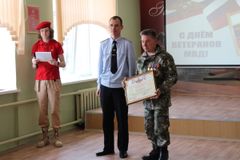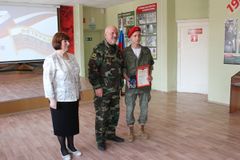Нина Васильевна Зотова вручила учащимся школ дипломы за участие в региональном конкурсе «Рисуем открытку вместе с папой» и благодарственные письма за активное участие в мероприятиях с ветеранами ОВД юнармейцам отряда «Патриот имени Героя Советского Союза Д.Т.Воеводина» Буланову Матвею и Покровскому Олегу.