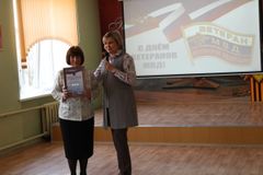 Начальник управления образования и молодёжной политики Татьяна Константиновна Седова поблагодарила ветеранов за большую патриотическую работу. За тесное сотрудничество и большой вклад в патриотическое воспитание подрастающего поколения вручила благодарность председателю Совета ветеранов отдела МВД России «Касимовский» Нине Васильевне Зотовой.