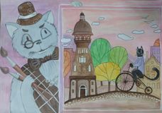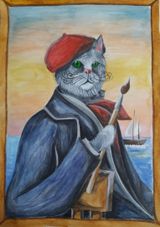 Активисты города Касимов представили свои творческие работы на конкурс. Участники проявили фантазию и креативность и не только нарисовали кота,но и описали, почему именно такой кот может стать эрмитажным и чем он мог бы заниматься в музее.