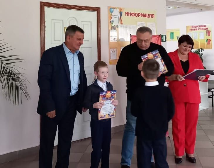 На линейке глава Касимовского муниципального округа Бахилов Иван Аркадьевич и депутат областной Думы Глазунов Александр Николаевич подарили школе аудиосистему для проведения школьных мероприятий и наградили учащихся и педагогов за активное участие в акции "Посылка солдату».