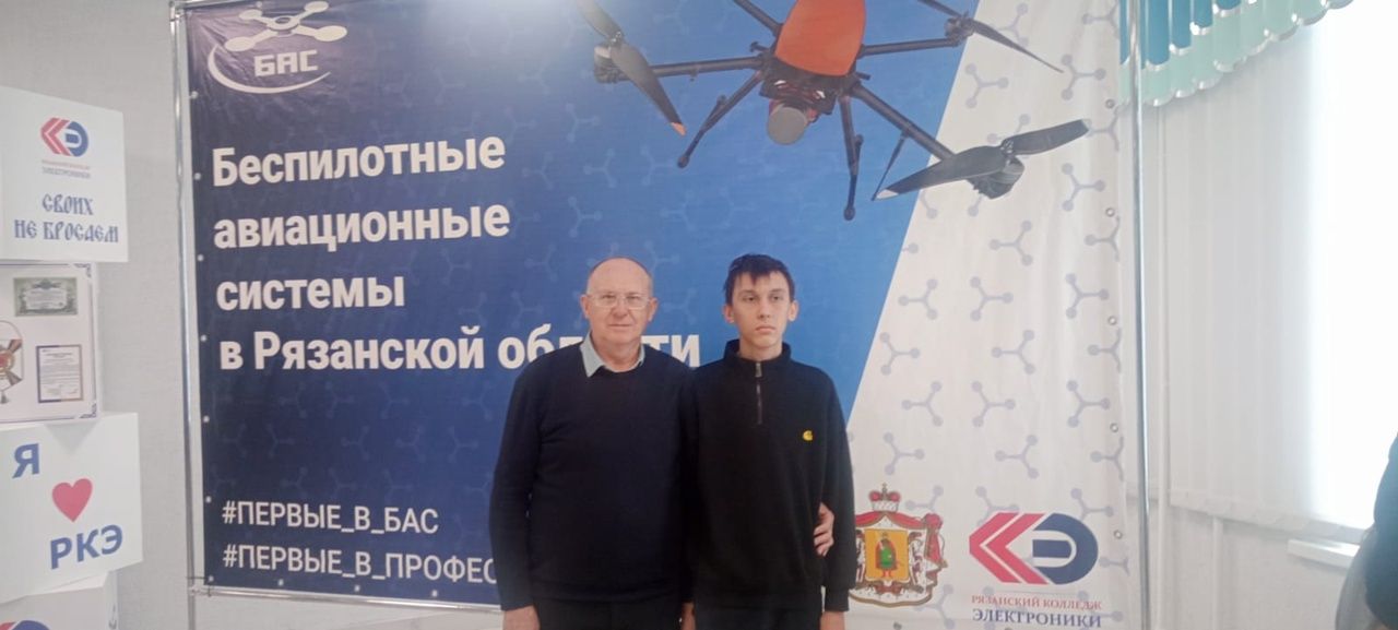 Касимовский муниципальный округ представляли ученик 8А класса Репин Даниил и руководитель специализированного кружка "БАС" школы №6 Владимир Михайлович Антонов.