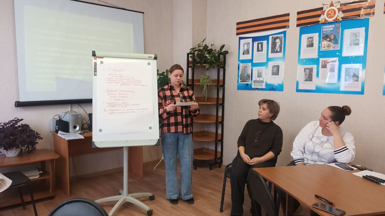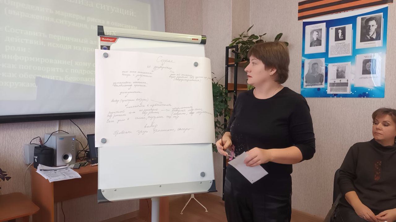 С помощью практических приемов участники отработали последовательность действий педагога-психолога и социального педагога в случае выявления рисков и совершения негативных действий обучающимися.