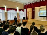 25 ноября в рамках XI Всероссийской акции «Есть такая профессия - Родину защищать» на базе средней школы №3 прошла профориентационная встреча учащихся 10-11 классов школ Касимовского муниципального округа с сотрудником Рязанского гвардейского высшего воздушно-десантного ордена Суворова дважды Краснознаменного командного училища имени генерала армии В.Ф. Маргелова, участником СВО Балабановым Дмитрием Владимировичем.