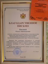 Специалист сектора по опеке и попечительству была отмечена благодарственным письмом министерства образования Рязанской области.
