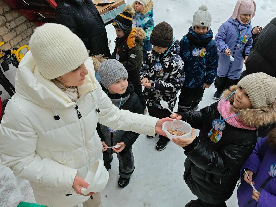 В завершении игры дошколята отведали горячей гречневой каши, приготовленной на настоящей полевой кухне, получили сладкие призы и памятные медали.