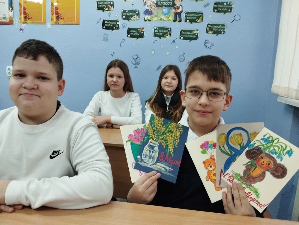 Ребята с любовью сделали своими руками открытки и подписали поздравления с 8 марта.